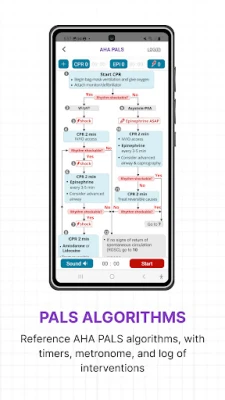 AHA PALS erbjuder en rad kraftfulla funktioner som förenklar och förbättrar den akuta omvårdnaden. Appens användarvänliga gränssnitt ger omedelbar tillgång till centrala PALS-algoritmer, inklusive hjärtstopp, takykardi med puls, bradykardi med puls och post-hjärtstoppsvård, samt omfattande referensmaterial. Du får tillgång till komplett PALS-innehåll, inklusive läkemedelsterapi och doseringar, samt reversibla orsaker. Praktiska verktyg som tydliga tidtagare, en funktion för att logga omgångar av HLR, adrenalin och defibrilleringar finns integrerade, kompletterat med en metronom för att optimera kompressionernas noggrannhet och en dedikerad ROSC-knapp. En snabbknapp inom hjärtstoppsalgoritmen möjliggör även en sömlös övergång till checklistan för post-hjärtstoppsvård när patienten uppnår ROSC. Dessutom innehåller appen vitala referensdata såsom PALS-läkemedel, pediatriska vitalparametrar, en färgkodad längdbaserad återupplivningstejp (anpassad från Breslow tape) och pediatrisk Glasgow Coma Scale – allt för att stödja snabba och informerade beslut. Appen uppdateras regelbundet för att säkerställa att du alltid har tillgång till det senaste PALS-innehållet.