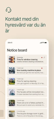 Inuti Boendeappen väntar en värld av funktionalitet som är anpassad just för ditt hem. Få de senaste nyheterna och viktig boendeinformation direkt till din enhet. Rapportera enkelt fel och följ statusen på dina ärenden i realtid. Glöm pappersavier – betala din hyra eller avgift digitalt med några få klick. Appen ger dig även full kontroll över bokningen av gemensamma utrymmen som tvättstugan, övernattningslägenheter eller föreningslokaler. Utforska möjligheten att visualisera din egen förbrukning eller påverka ditt boende genom att välja tillval, allt integrerat för din bekvämlighet.