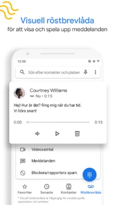 Förenkla din röstmeddelandeupplevelse med Telefonappens visuella funktioner. Istället för att ringa upp traditionella röstbrevlådor kan du bläddra igenom dina meddelanden direkt i appen, spela upp dem i valfri ordning, eller läsa transkriberingar för snabb överblick. Hantera dina meddelanden effektivt genom att spara eller radera dem med bara ett tryck. Allt detta presenteras genom en intuitiv och användarvänlig design som håller dina viktigaste kontakter nära till hands. Växla dessutom till det mörka läget för att både förlänga batteritiden och minska ansträngningen för ögonen under kvällstid.