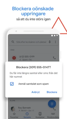 Telefonappen förvandlar din mobila kommunikation och ger dig full kontroll över vem som når dig. Upplev en smartare samtalshantering där du omedelbart får varningar om potentiella spam- eller bedrägeriförsök, vilket hjälper dig att smidigt undvika oönskade avbrott. Tack vare Googles omfattande nummerpresentation ser du klart och tydligt vilket företag som ringer, så att du kan svara med tillförsikt. Dessutom kan du enkelt blockera specifika nummer för att garantera att de inte kan störa dig igen, vilket skapar en lugnare och mer fokuserad vardag utan oönskade distraktioner.