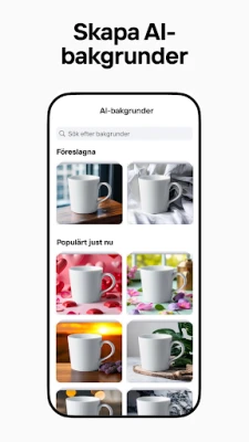 Photoroom revolutionerar hur du skapar visuellt innehåll med sin banbrytande AI-teknik. Förvandla dina bilder till professionella mästerverk på ett ögonblick, oavsett om du behöver designa, redigera eller byta bakgrund. Med Photoroom blir det enkelt att lyfta ditt varumärke, fånga publikens intresse och öka din försäljning. Nu kan du även väcka dina visioner till liv med imponerande, AI-genererade videor som sticker ut i mängden.