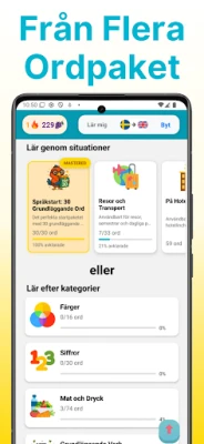 Kärnan i Rico är dess innovativa svepmetod, designad för att spegla det naturliga flödet i moderna appar. Se ett nytt ord presenteras i sitt sammanhang; svep höger för att markera det som känt, vänster för att lägga till det i din repetitionslista, eller uppåt när du känner dig säker på att du behärskar det. Rico anpassar sig intelligent till din inlärningstakt och skapar en personlig resa. Utforska noggrant utformade ordförrådspaket för verkliga situationer – från "Topp 100-ord" och "Resor & Transport" till "Affärsordförråd" och "Vardagliga situationer". Dessa tematiska kategorier säkerställer att du lär dig det som är mest användbart för just dina behov.