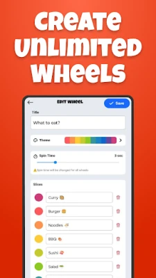 Men appen är mer än bara ett beslutsverktyg; den är en förlängning av din personlighet. Ett rikt utbud av anpassningsalternativ låter dig designa dina hjul med livfulla färger, minnesvärda etiketter och teman som perfekt speglar din stil. Möjligheterna är oändliga: skapa en mångfald av anpassade hjul för varierande scenarion, spara dina mest använda konfigurationer för snabb åtkomst och dela dina kreativa lösningar med vänner och familj. Oavsett om det gäller personliga funderingar, professionella överväganden eller pedagogiska aktiviteter, blir detta din oumbärliga följeslagare.